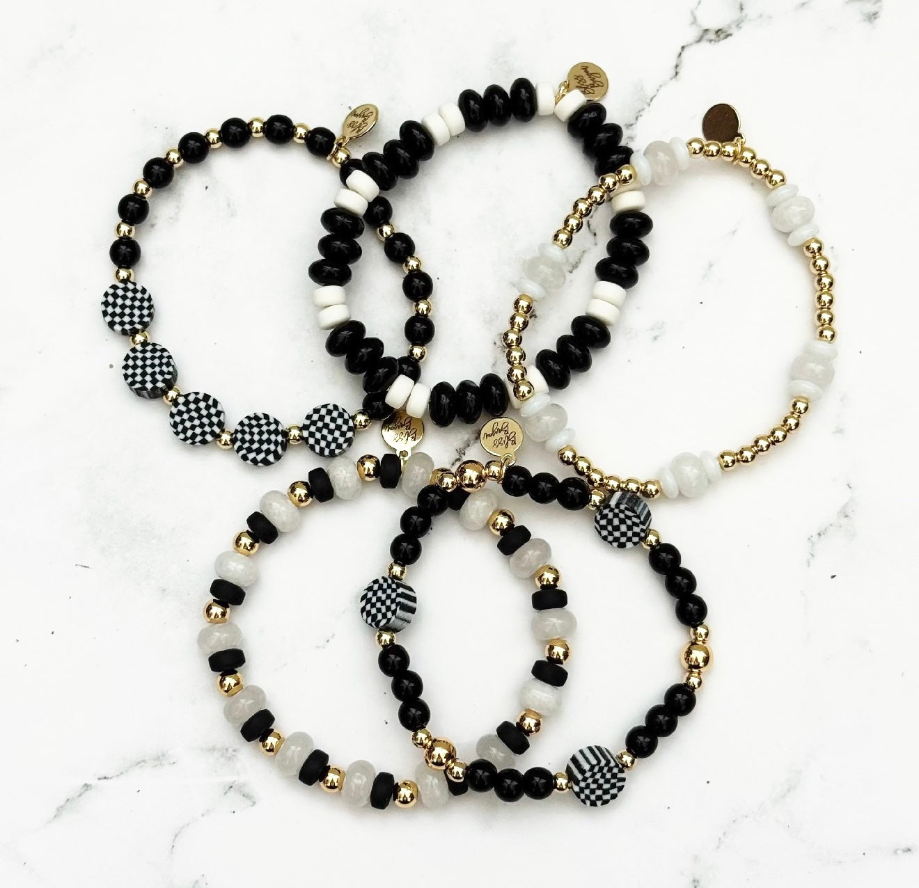 This bracelet set is for the girls that love a good black and white combo! It matches everything and looks amazing with all of your other bracelets! Bring on the stacks!
